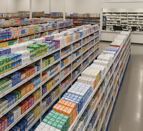 일반의약품(OTC)은 물론 영양제, 의약외품, 파스, 연고 등도 진열되어 있어 직관적인 비교와 대량 구매가 가능하다.